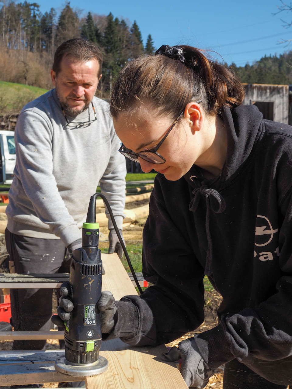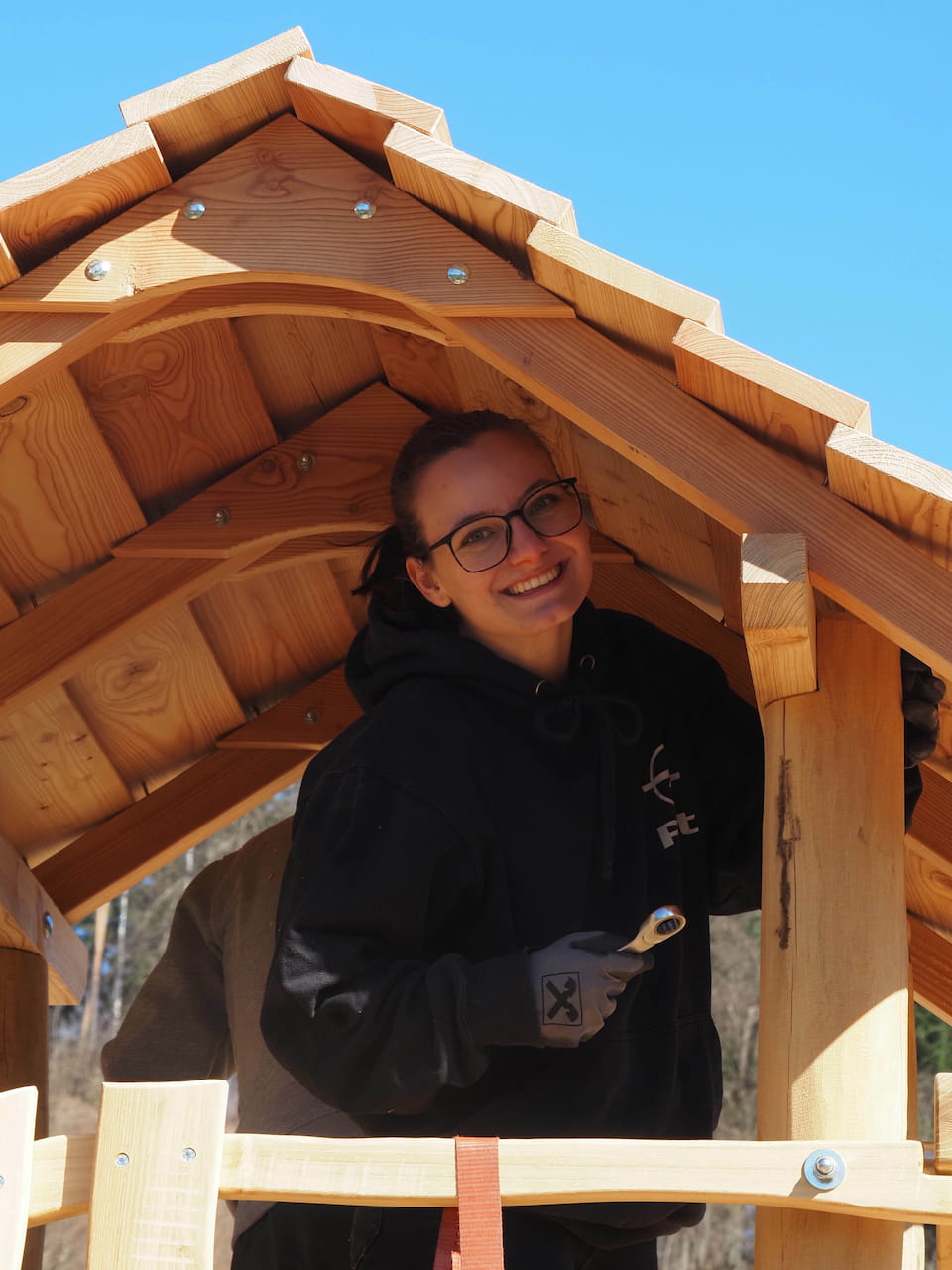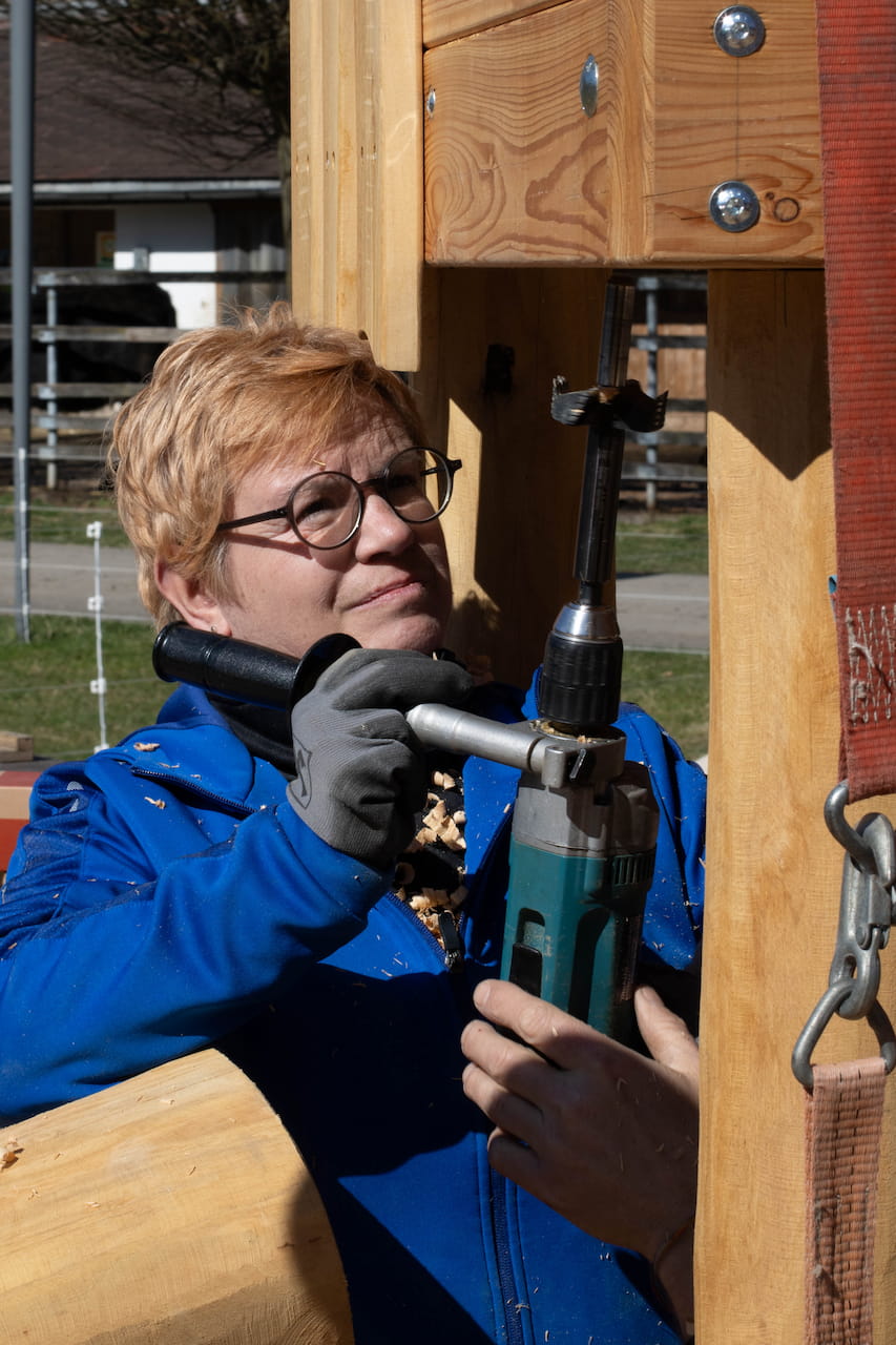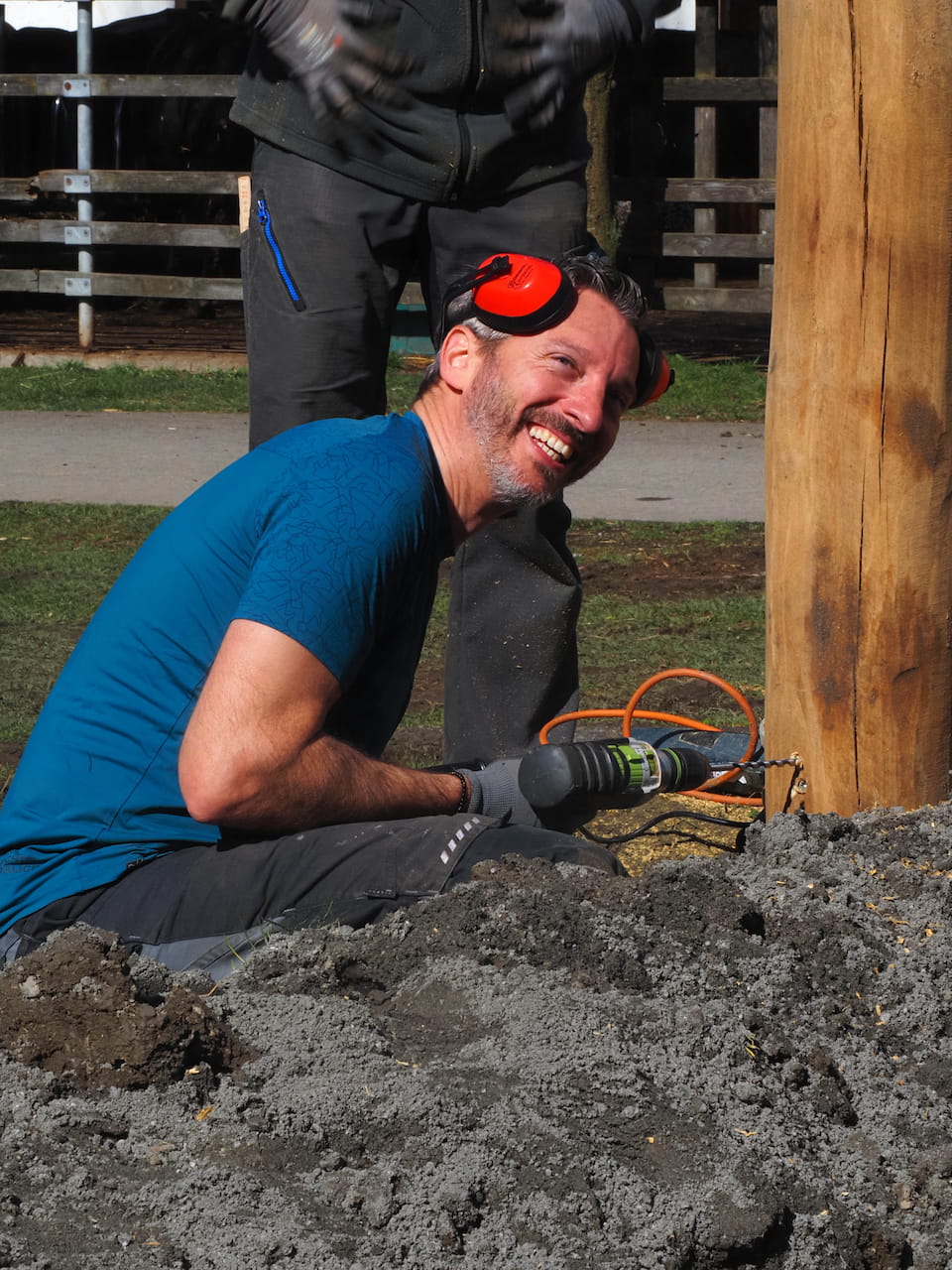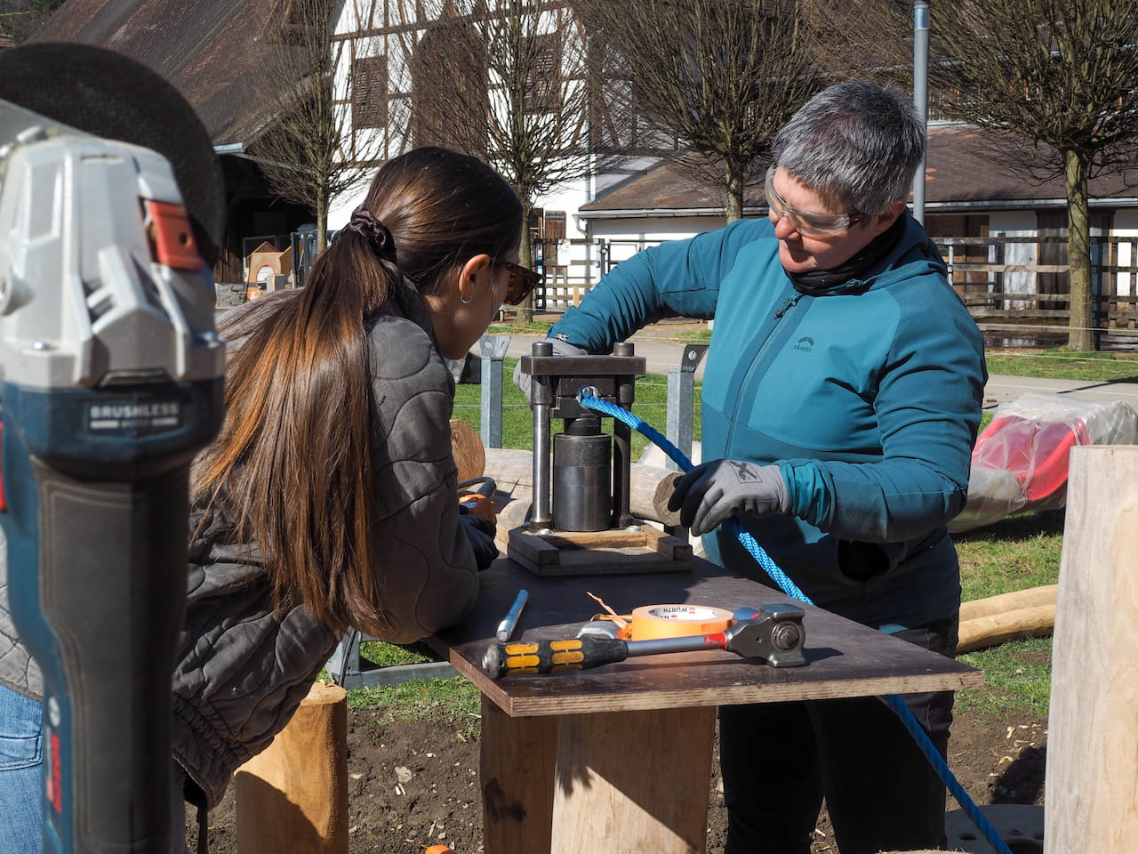 Bereits am frühen Morgen tauschten wir unsere Büro- und Schalterarbeitsplätze gegen Bohrmaschine, Kettensäge und Schaufel. Unter der Anleitung des AQUA Mühle-Teams und gemeinsam mit den am Sunnahof beschäftigten Menschen mit Behinderung wurde den ganzen Tag über fleißig gearbeitet. Am Abend war es dann soweit: der neue Spielplatz war fertig und bietet den Kindern nun einen Ort, an dem sie unbeschwert spielen und Gemeinschaft erleben können.