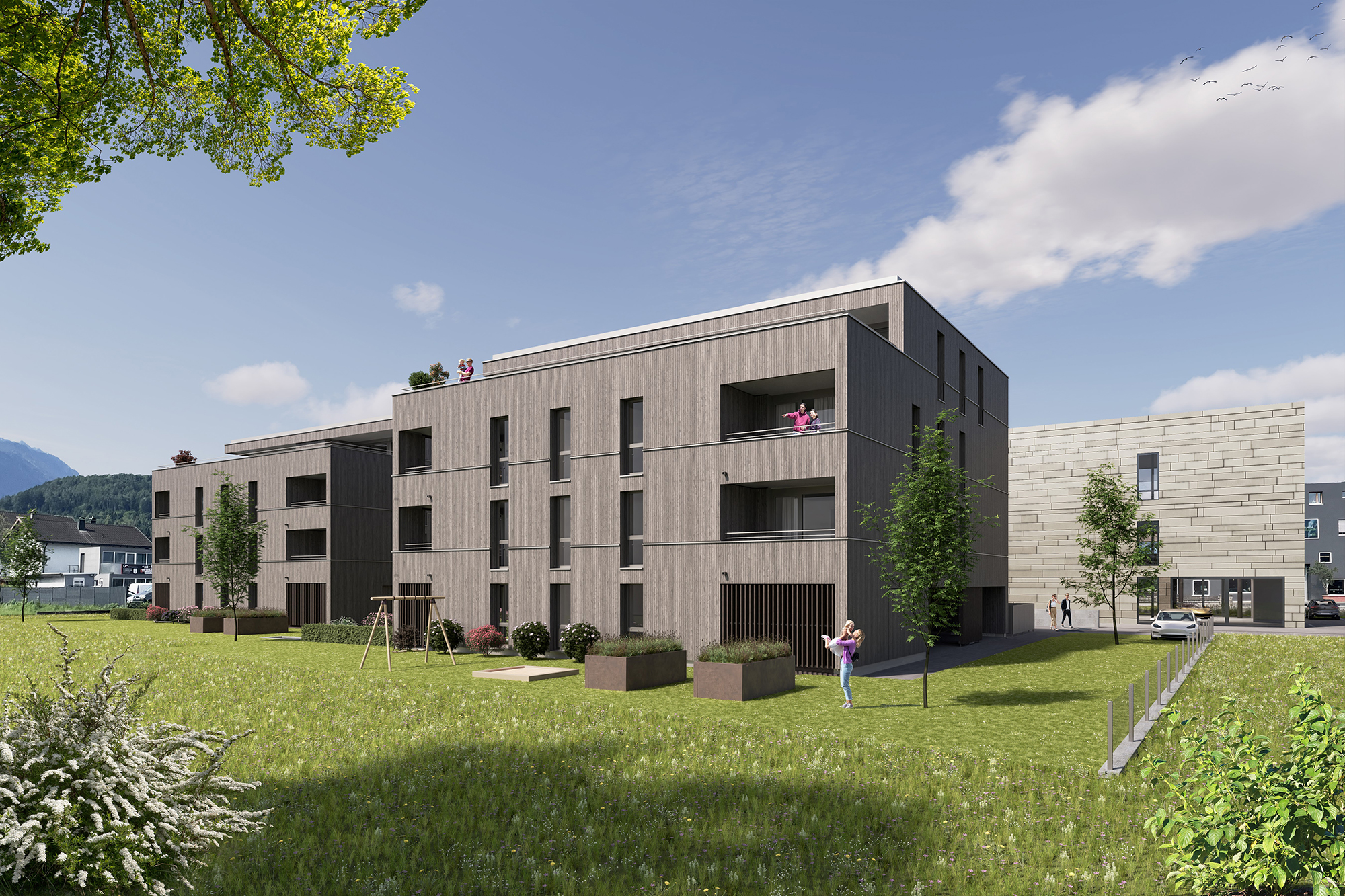 Die von der Nachbaur Wörter Architekten ZT GmbH geplanten Gebäude erstrecken sich über das Erdgeschoss und drei weitere Stockwerke. Alle Wohnungen werden altersgerecht und barrierefrei errichtet und sind über einen Aufzug erreichbar. Eine Tiefgarage mit 32 Plätzen bietet zudem bequeme Parkmöglichkeiten.